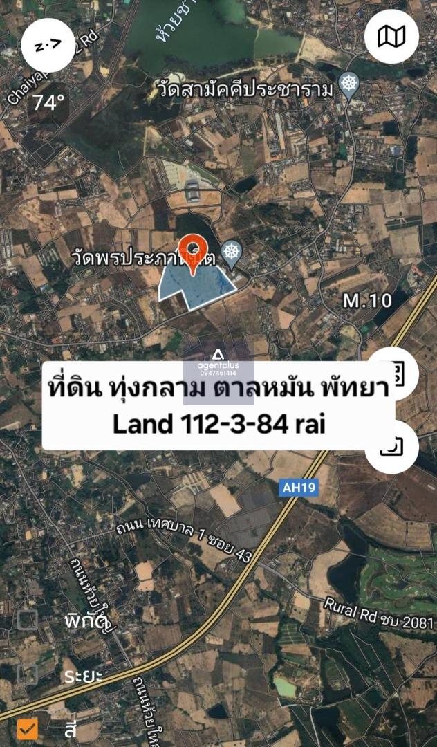 在路上出售的土地,大地块,陶尔克洛姆,塔尔男子,帕塔亚土地112-3-3-84 rai以5,500,000泰铢的价格出售每rai