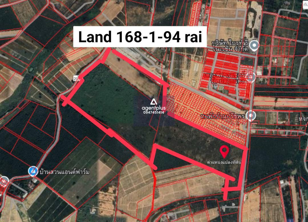 待售土地,紫色图案,地图阳ph,plaeng daeng,rayong土地168-1-94 rai出售3,000,000 baht per rai