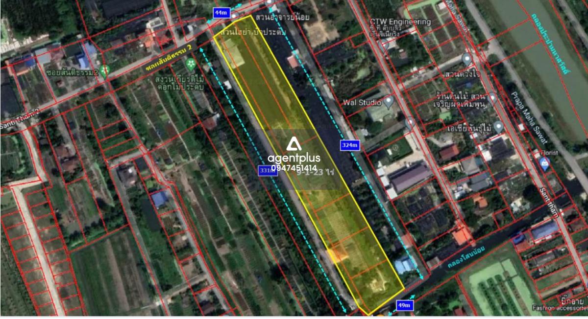平均每平方WAH的价格:15,000 bahtthai名称土地尺寸:9 rai 1 ngan 23广场WAH(总计3,723 Square Wah)