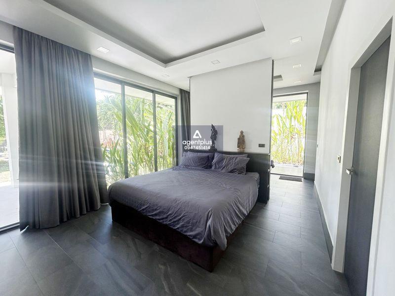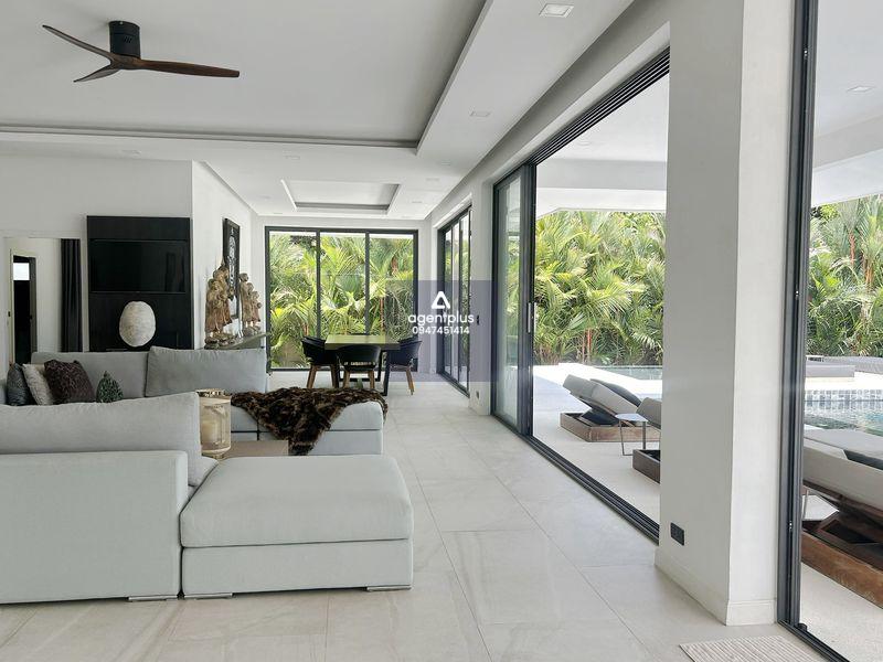 พูลวิลล่าหรูหลังนี้ออกแบบอย่างมีสไตล์ พื้นที่ใช้สอยโปร่งโล่งสว่างด้วยกระจกบานใหญ่ เปิดมุมมองสู่สระว่ายน้ำและสวนรอบบ้าน เหมาะสำหรับการพักผ่อนหรือจัดสังสรรค์กลางแจ้ง พร้อมสิ่งอำนวยความสะดวกครบครันทั้งในบ้านและนอกบ้าน