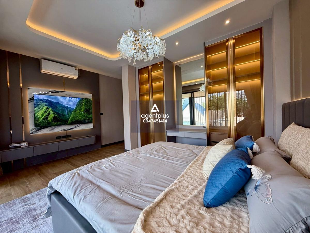 Built-in TV wall with special design It is the focal point of the complete European kitchen space. With separate Thai kitchen Supports actual use