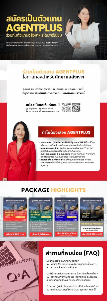 สมัครเป็นตัวแทนขายอสังหาฯ กับ Agentplus วันนี้ รับสิทธิใช้ระบบ, เข้าร่วมอบรม, และเลือกแพ็กเกจที่เหมาะกับคุณ — สมัครออนไลน์ง่าย ๆ ที่นี่